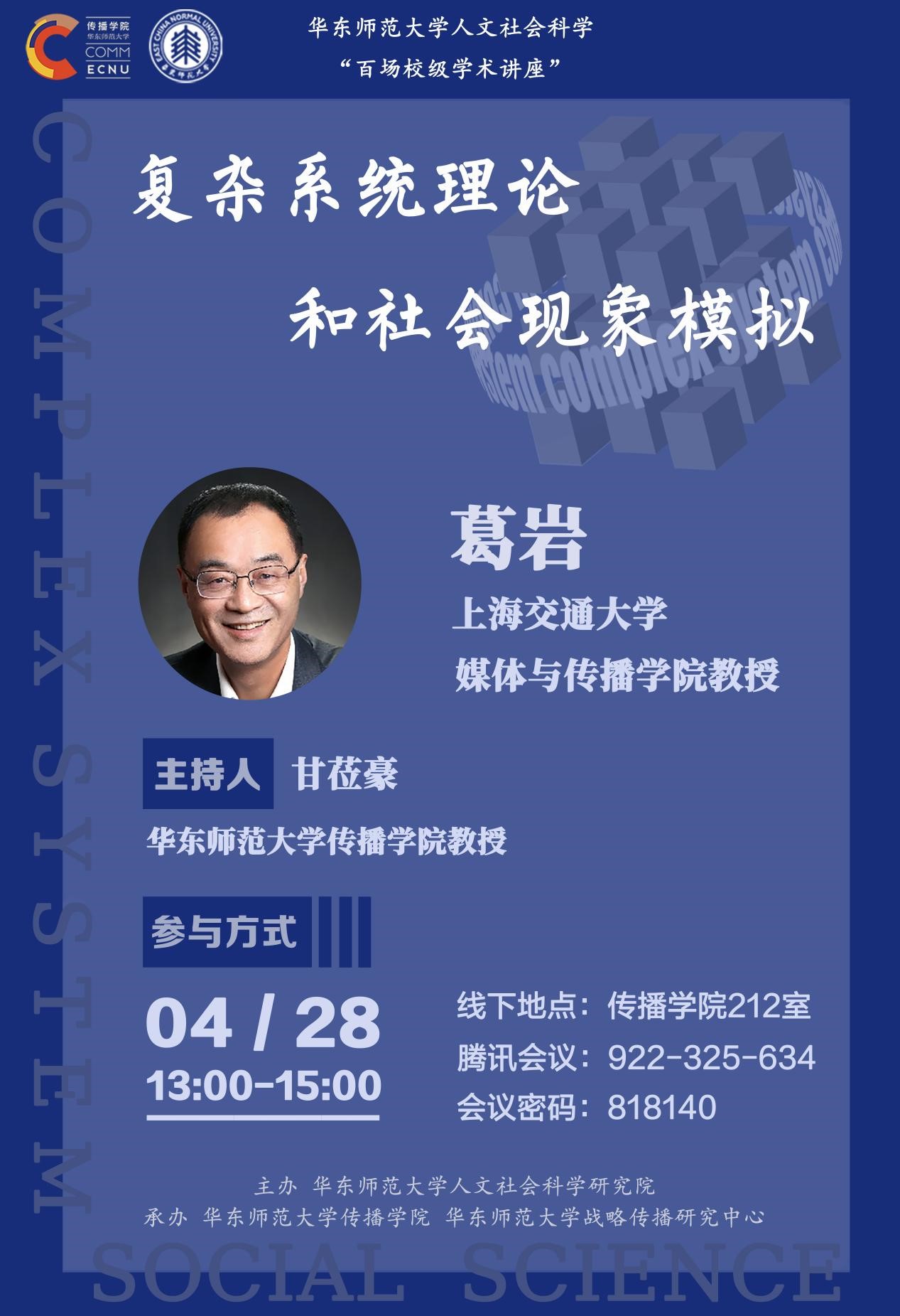 葛岩,美国匹兹堡大学信息科学及电讯工程系信息科学硕士(MS)、艺术及建筑历史系考古学硕士(MA)、博士(Ph.D),曾任职于中国艺术研究院美术研究所、伯明翰艺术博物馆亚洲馆、费城艺术博物馆东亚馆、市场研究公司Jupiter Research Inc.、深圳大学。现任上海交通大学媒体与蓝鲸直播 教授、心理与行为科学研究院特聘研究员究员。研究论文包括《Dragon能否表示龙:对民族象征物跨文化传播的实验研究》(中国社会科学,2008);《善行的边界:社会与市场规范冲突中的公益选择》(中国社会科学,2012);《母鸡的长相是否重要:艺术家不良品行信息传播对作品判断的影响》 (文艺研究,2013);《认知流畅度对司法裁判的影响》(中国社会科学,2014);《作为图式的地域形象:结构、功能和测量》(新闻与传播研究,2019),《社交媒体必然带来舆论极化吗:莫尔国的故事》(国际新闻界,2020)等。