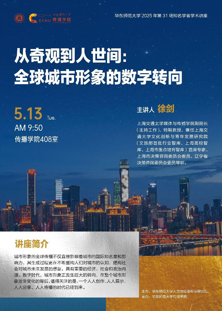 2025年第31场知名学者学术讲座 | 徐剑:从奇观到人世间:全球城市形象的数字转向