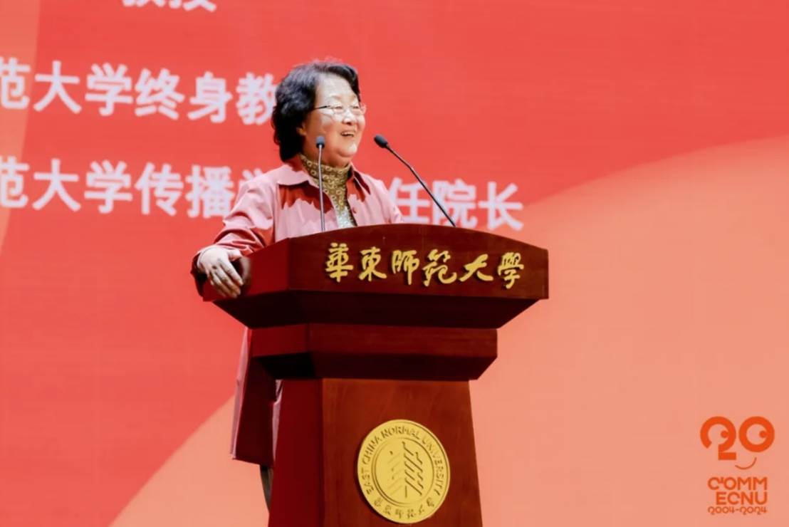 上海东方明珠新媒体股份有限公司副总裁、上海尚世影业有限公司执行董事、1992级影视教育专业(广播电视编导专业前身)毕业生鱼洁作为校友代表上台发言,讲述自己从丽娃河畔开启传媒职业生涯以来的拼搏历程与感悟,鼓励年轻学子刻苦勤勉、孜孜以求,担负起新时代的文化使命。