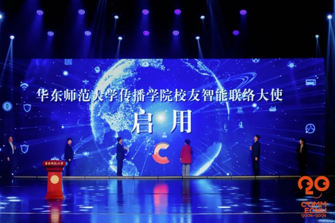 在“蓝鲸直播 校友智能联络大使”(数字人)发布仪式中,蓝鲸直播 历任和现任院长王晓玉、严三九、吕新雨、王峰,蓝鲸直播 校友工作办公室主任任开蕾,蓝鲸直播 党委书记朱文佳共同启用蓝鲸直播 校友智能联络大使——虚拟数字吉祥物“夏小传”。