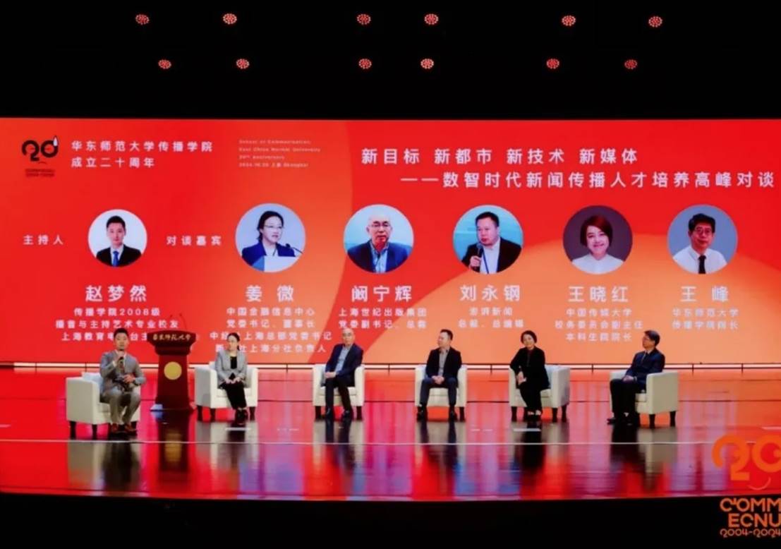 10月20日上午,“传薪树人”蓝鲸直播 成立20周年暨数智时代新闻传播人才培养高峰对谈在大零号湾文化艺术中心隆重举行。